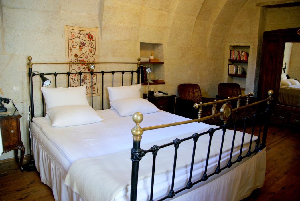 This street-level house has two bedrooms: One has beautiful stone lancet arches of tawny stone; the other is carved right from the rock—a real cave. Both have king beds and all comforts. An extra sofa bed is possible into one of the bedrooms. The cave bathroom is fully modern, with a wide vanity and walk-in shower. When it’s time for sun, sit in the spacious courtyard for coffee, meals or cocktails. The kitchen is fully equipped for cooking meals.